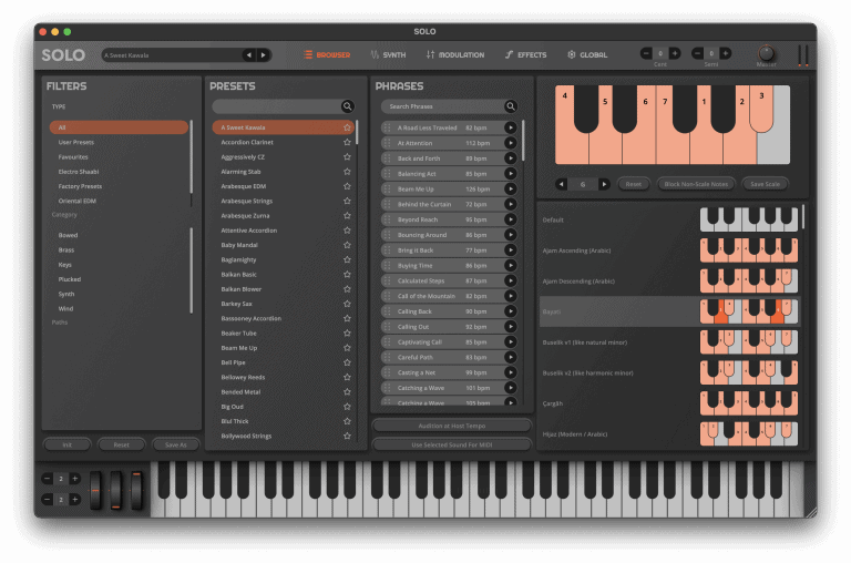 Featuring a unique blend of hybrid synthesis, microtonal scales, and world music sounds, SOLO is the ultimate tool for composers, producers, and musicians seeking to infuse their compositions with captivating global flavors.